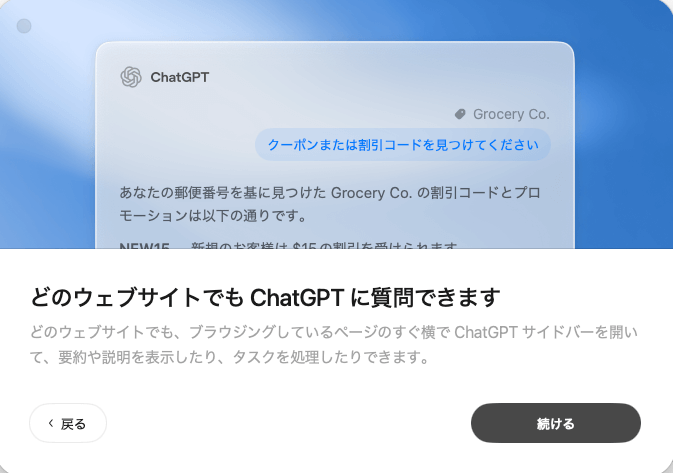 ブラウザ上でAIに質問・要約を依頼できるほか、メモリー機能により過去の閲覧内容を再利用でき、